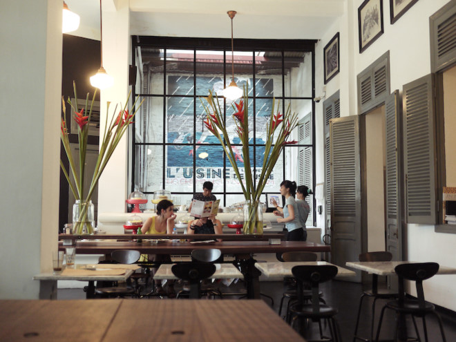 - L’Usine bao gồm một cửa hiệu thời trang, một tiệm cà phê và phòng trưng bày nghệ thuật được trang trí, bày biện dựa trên cảm hứng về hình ảnh Việt Nam thời kỳ Đông Dương. Không gian chính của L’Usine dành cho việc buôn bán thời trang, cà phê. Chỉ có khoảng 20 m2 là dành cho không gian triển lãm.